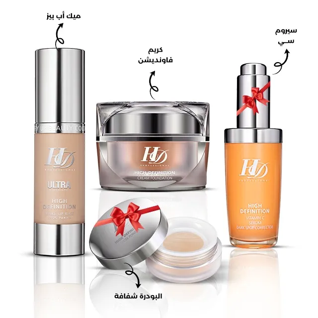 🔹 كريم فاونديشن لتغطية مثالية 🔹 ميكب بيز يوحد البشرة ويعطيها إشراقة 🔹 سيروم فيتامين C يعزز النضارة (هدية) 🔹 بودرة شفافة لتثبيت المكياج (هدية)
